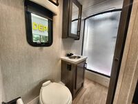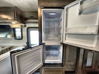 - Kitchen: Three-burner cooktop, 10 cu. ft. 12V refrigerator with 1,000-watt inverter, over-the-range microwave with exhaust fan, plenty of storage cabinets